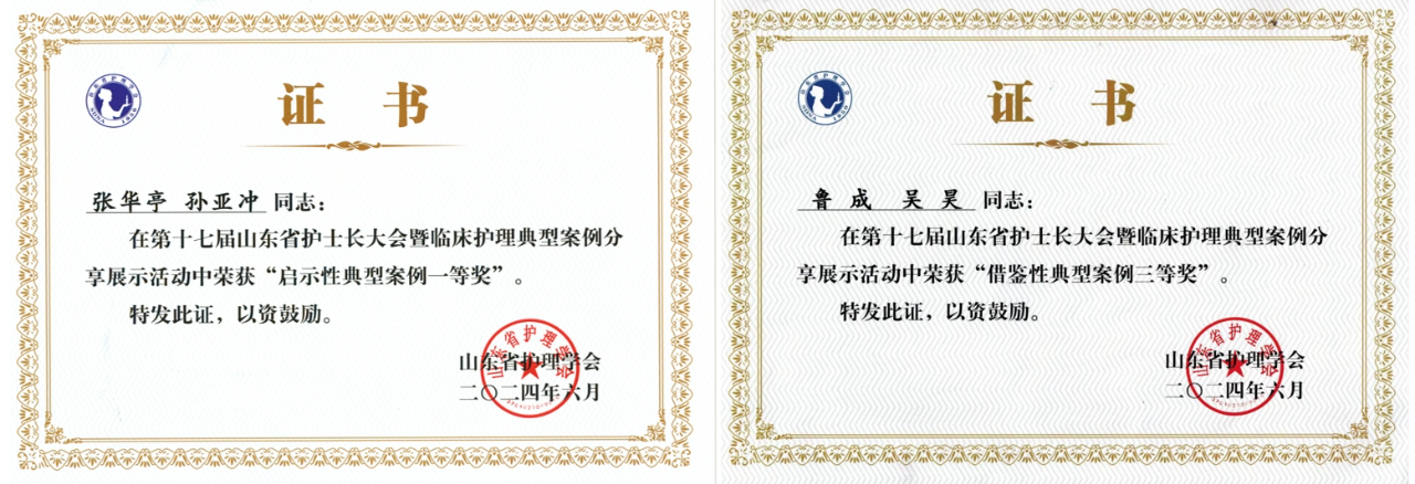 近日,山东省护理学会主办的“第十七届山东省护士长大会—临床护理典型案例比赛”在泰安圆满落幕。在全省各地优秀案例中,济宁市第一人民医院儿科总院新生儿病房张华亭、孙亚冲的《化茧成蝶—1例新生儿大疱性表皮松解症患儿的个性化护理》荣获启示性案例组一等奖,东院区血液透析室鲁成、吴昊的《1例通过自身血液预充预防透析器反应的护理案例》荣获借鉴性案例组三等奖。