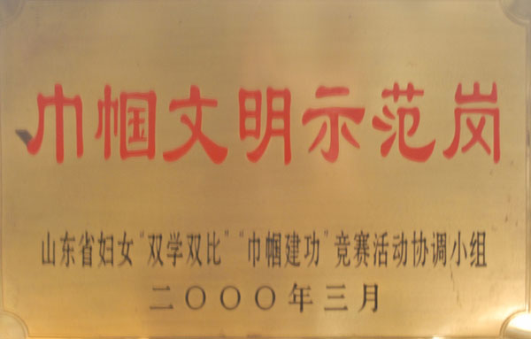 2000年济宁市第一人民医院护理部获山东省妇女“双学双比”“巾帼建功”竞赛活动协调小组颁发的“山东省巾帼文明示范岗”称号