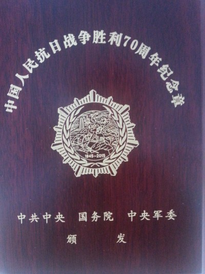 2015年9月3日是中国首个法定的“中国人民抗日战争胜利纪念日”。我院抗战老战士、老同志马昭远、武善英、马仲华、赵金珍、庞维新、焦开喜、李玉臻、张利华等接受了党和国家给予的荣誉,获颁中国人民抗日战争胜利70周年纪念章。