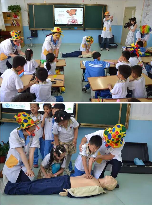 小丑医生首先教给孩子们应该如何做到安全游泳。其次,如果自己的小伙伴真的溺水了,大家如何沉着冷静的处理。