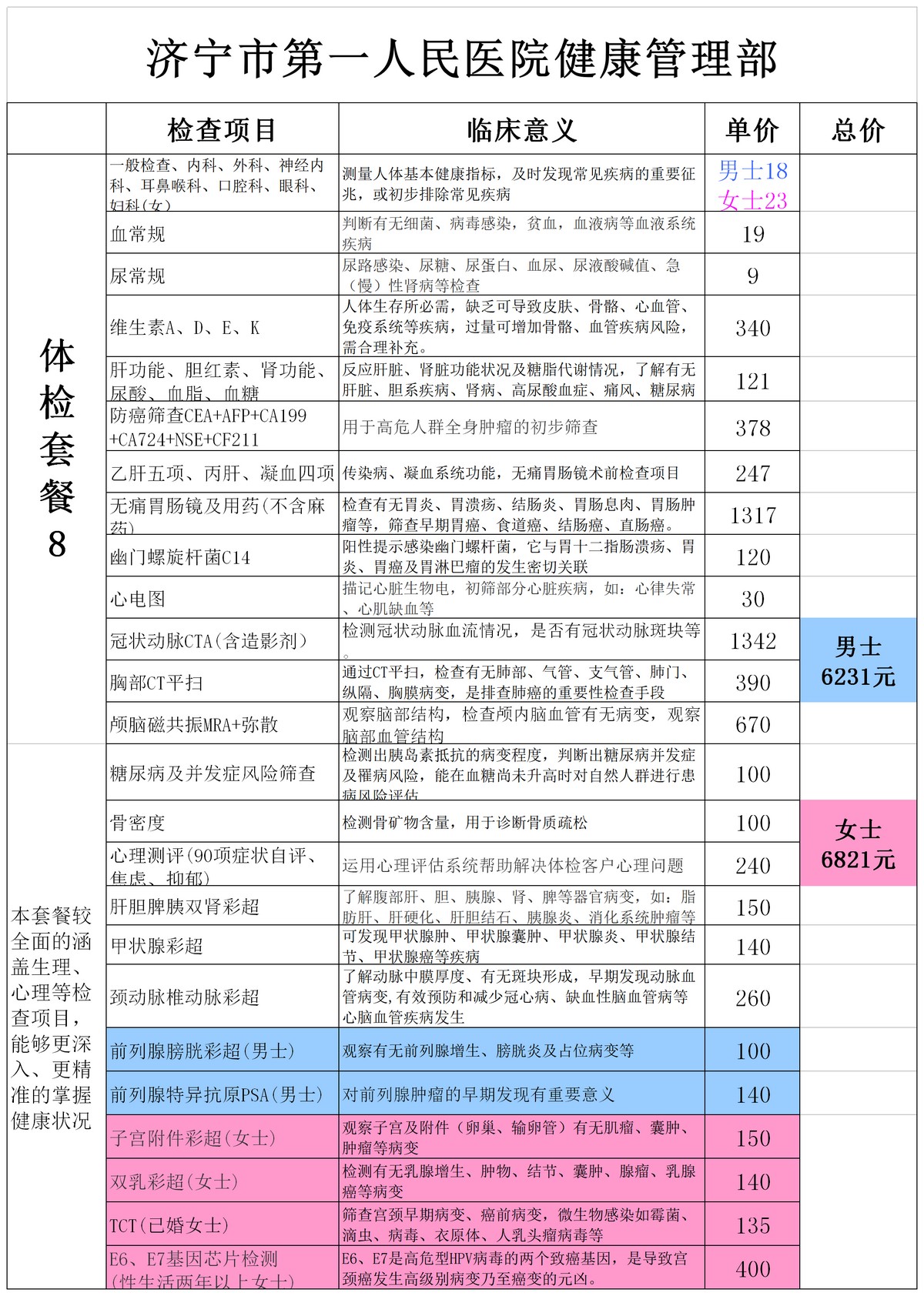 体检套餐8