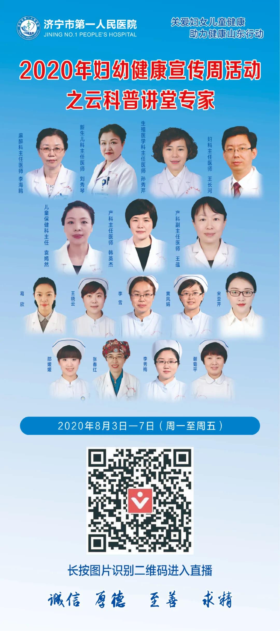济宁市第一人民医院多科室联动,邀请麻醉科、生殖医学科、产科、儿科、儿童保健科、心理科、营养科的专家一起举办一场大型线上云科普课堂,通过互联网+,向更多的妇幼家庭送去保健知识。