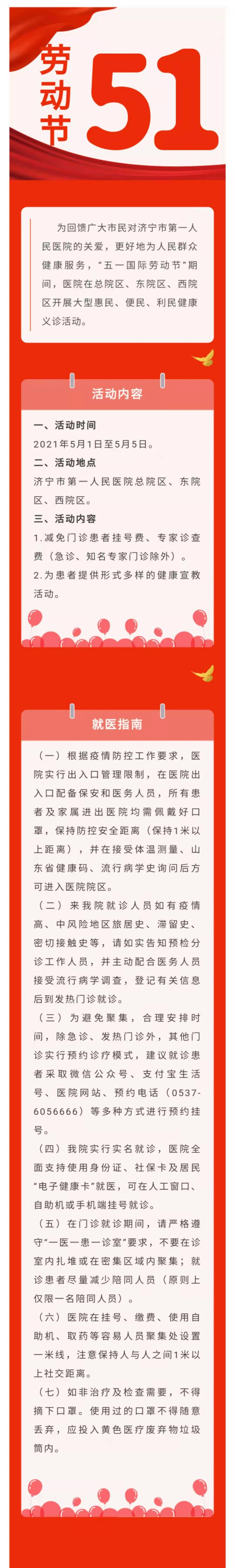 喜大普奔!庆五一,济宁市第一人民医院义诊送健康!
