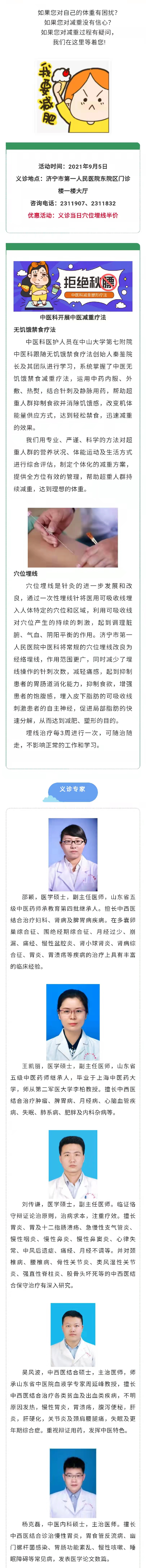 让肥胖再远一点,济宁市第一人民医院中医科开展第二期减重塑形义诊活动