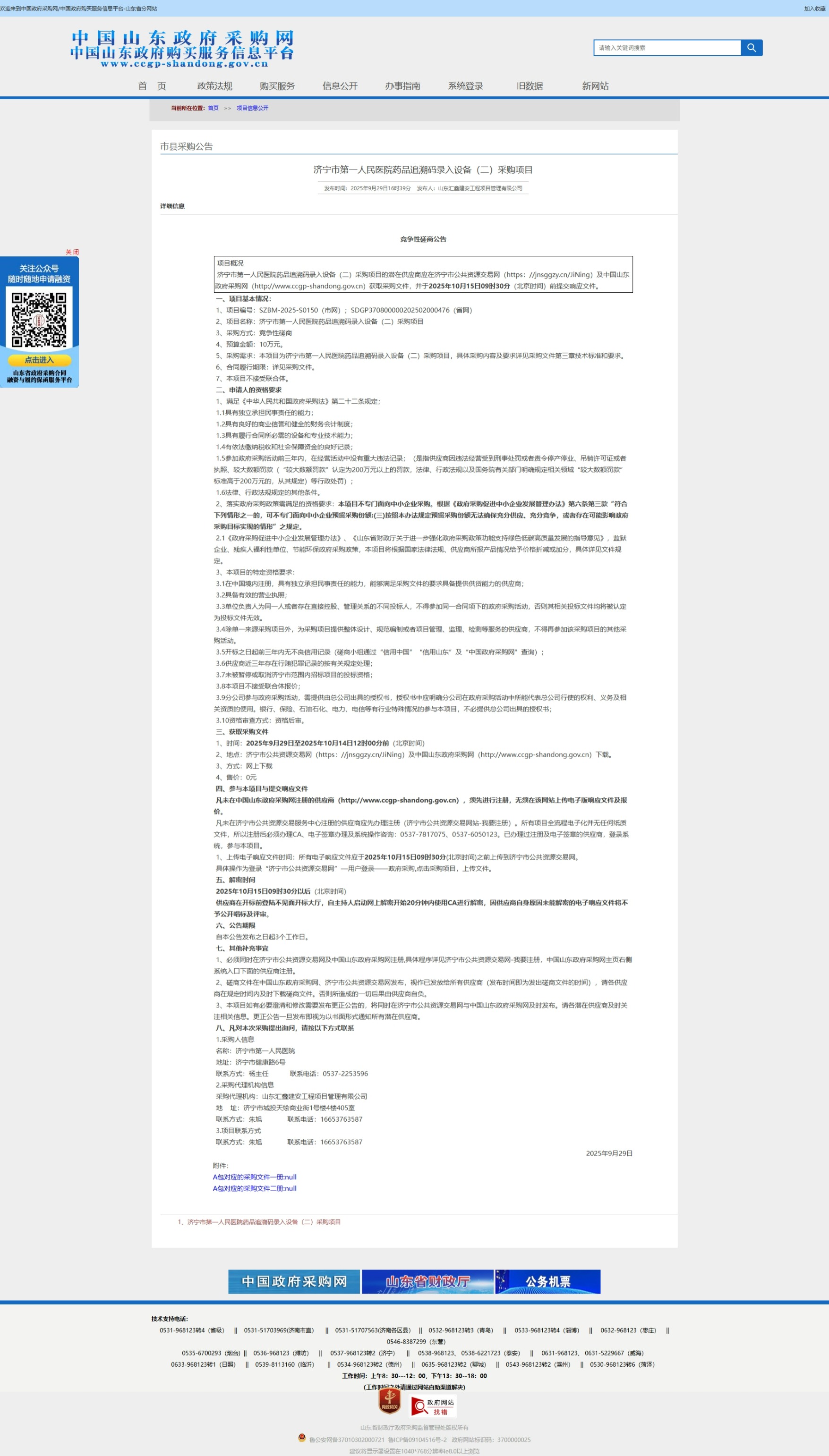 济宁市第一人民医院药品追溯码录入设备(二)采购项目竞争性磋商公告