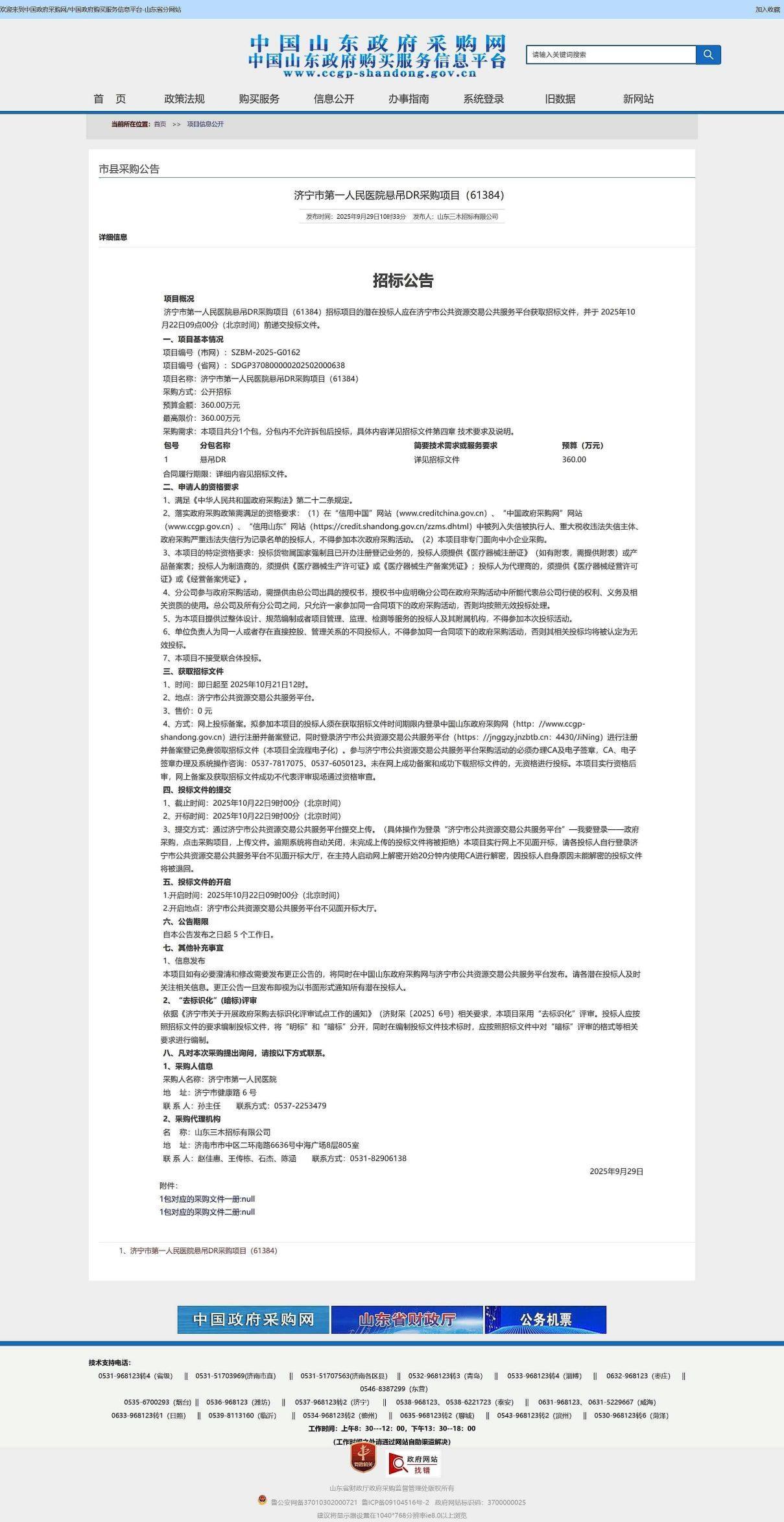 济宁市第一人民医院悬吊DR采购项目(61384)招标公告