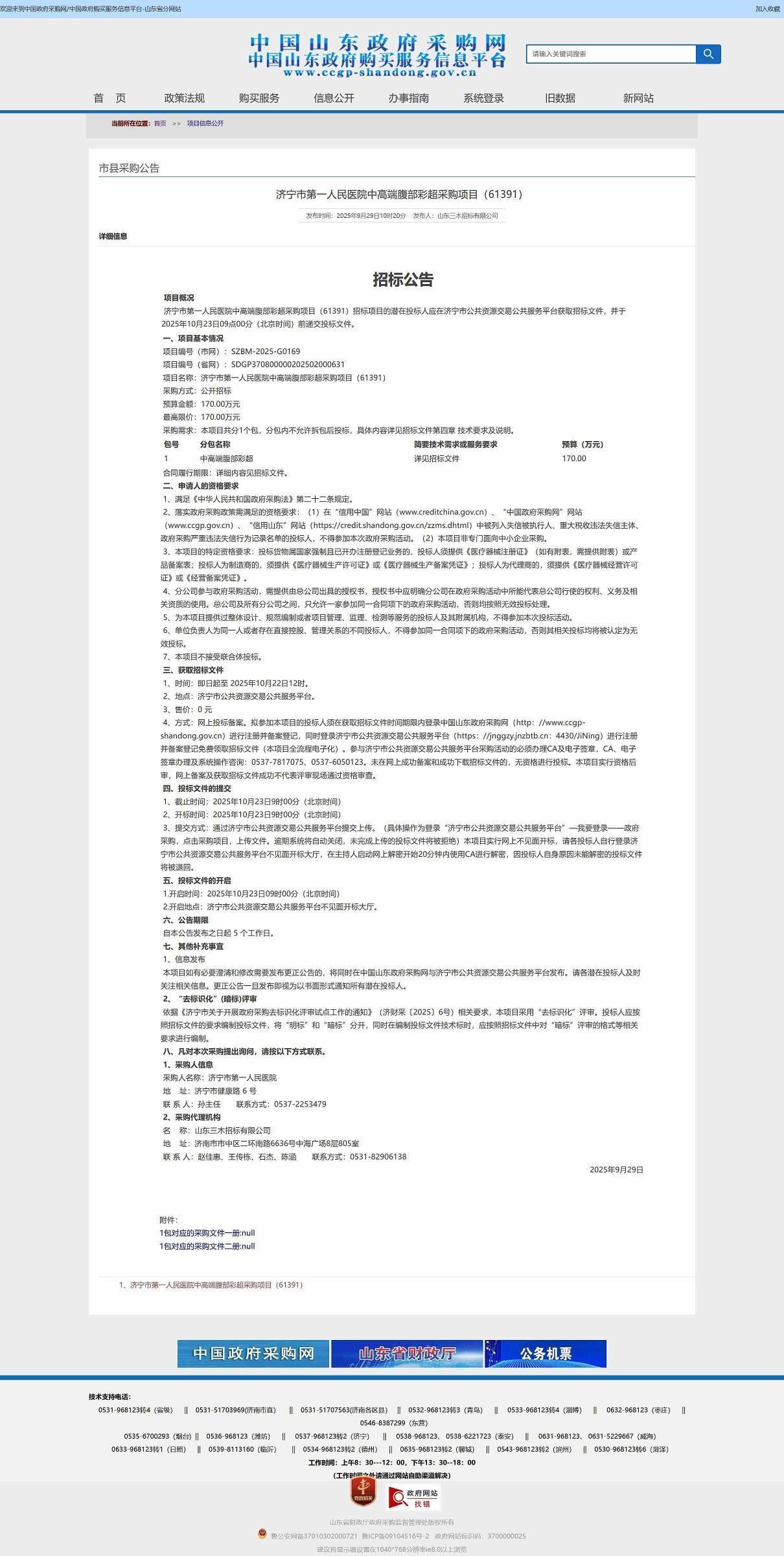 济宁市第一人民医院中高端腹部彩超采购项目(61391)招标公告