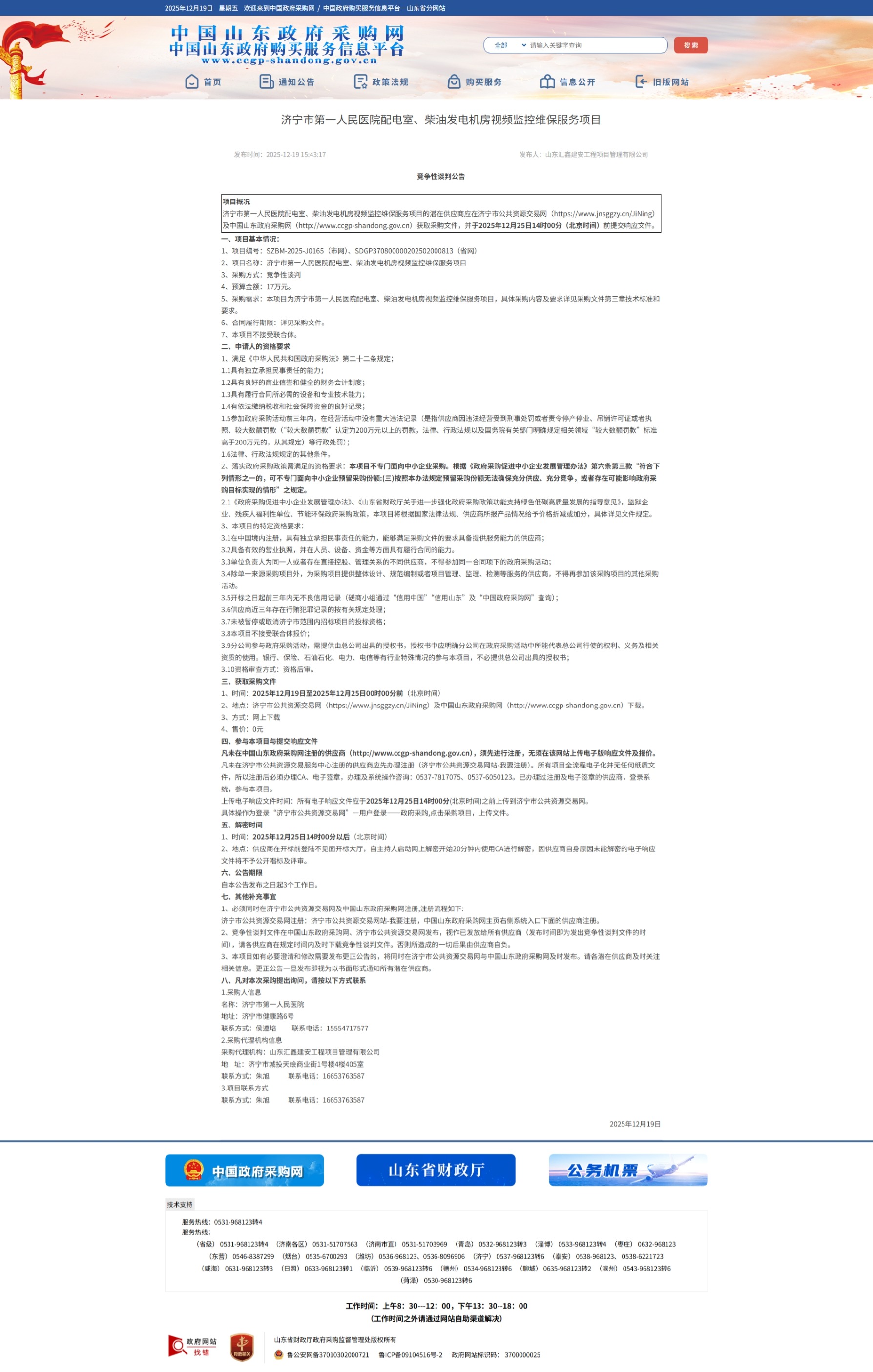 济宁市第一人民医院配电室、柴油发电机房视频监控维保服务项目竞争性谈判公告