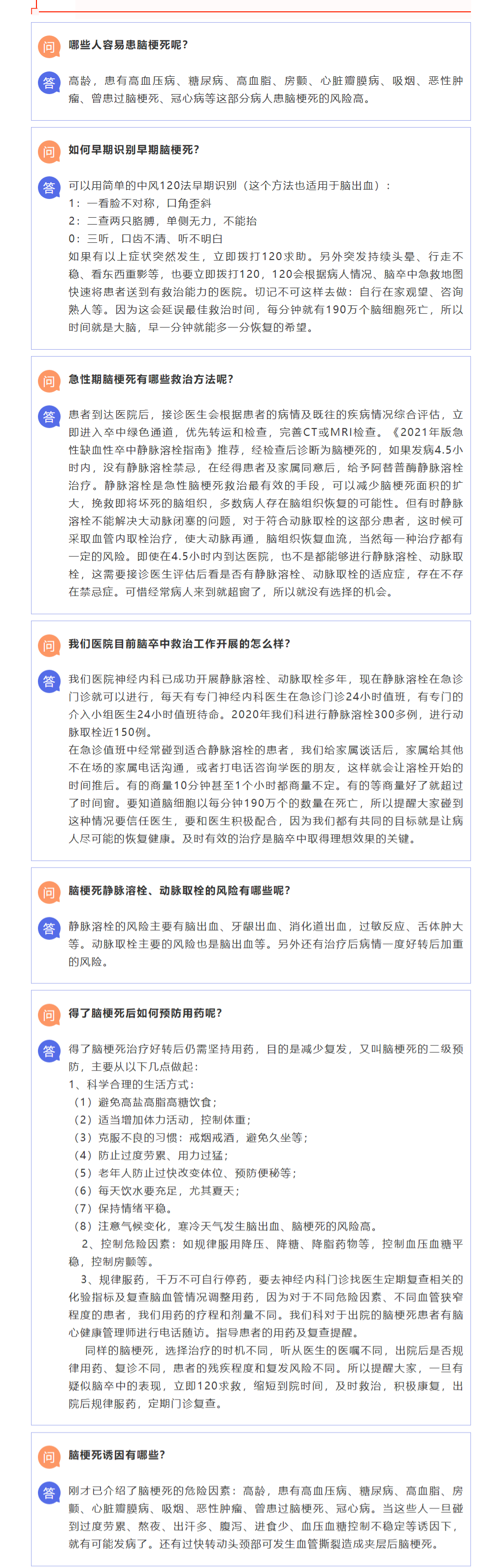 说到“脑中风”大家肯定会很紧张,这可不是一般的病,它起病突然,像自然界的风一样而得名。脑梗死就是最常见的脑中风。今天我们请到了济宁第一人民医院神经内科副主任医师 曹玉灵医生,让我们全面了解脑梗死这类疾病,教给大家如何救治和预防。