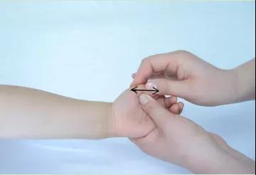 操作:患儿掌面向上,医者右手食中指自患儿腕横纹推向肘横纹