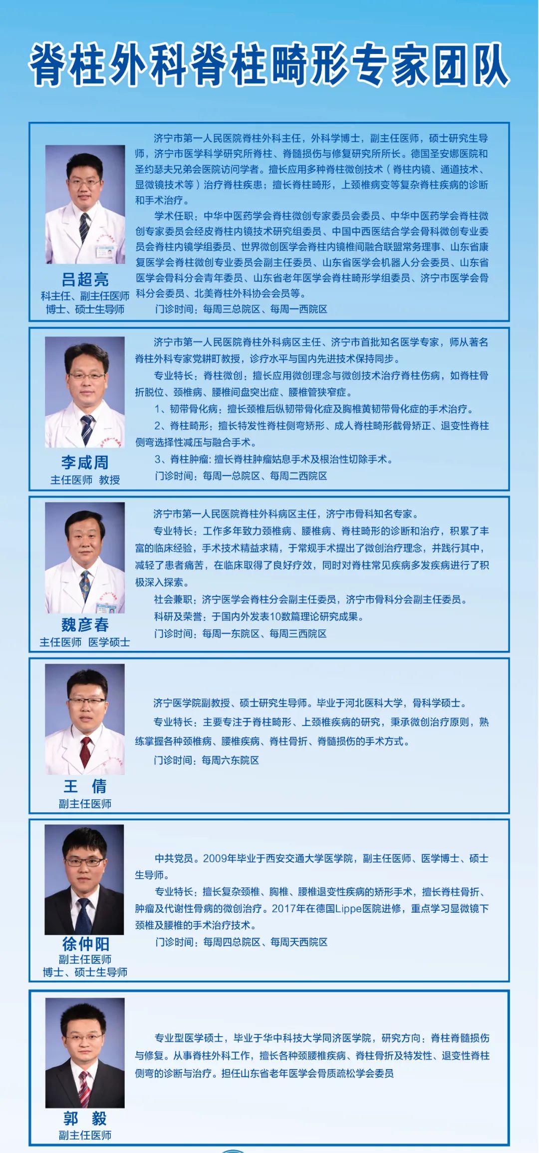 济宁市第一人民医院脊柱外科作为鲁西南地区规模较大、技术力量雄厚的科室,在吕超亮主任带领下,目前科室已成熟开展脊柱侧弯矫正手术并连续举办青少年脊柱侧弯免费筛查活动。