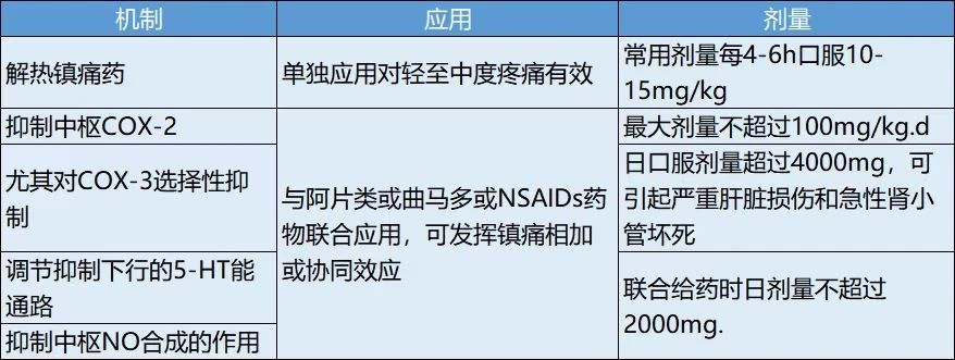 术后镇痛的最常见药物配方是对乙酰氨基酚和非甾体抗炎药(NSAIDs) 或选择性 COX-2 抑制药以及阿片类药物、曲马多配合 , 是术后镇痛尤其是制止中重度疼痛的最常用配方。