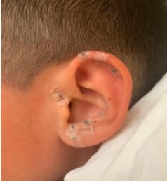 (3)儿童闭眼,双手拇指轻轻从目内眦推向目外眦,经过眼球时,轻轻按压,如此反复 2~3 次(切勿按压力度过大);