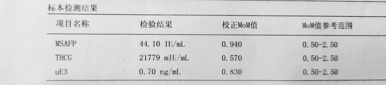通过检测血清中的uE3,AFP,HCG的含量,结合孕妇信息与数据库中的数据进行对比得出每一项的mom值,给出每一项的风险值。