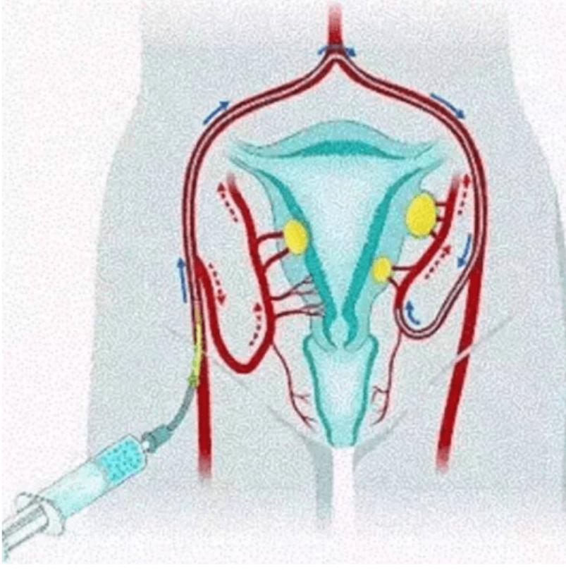 (1)可以直接切断子宫肌瘤、子宫腺肌症(瘤)及增大的子宫血液供应,瘤体缺血坏死,逐渐萎缩变小,并改善由于瘤体所引起的压迫症状。