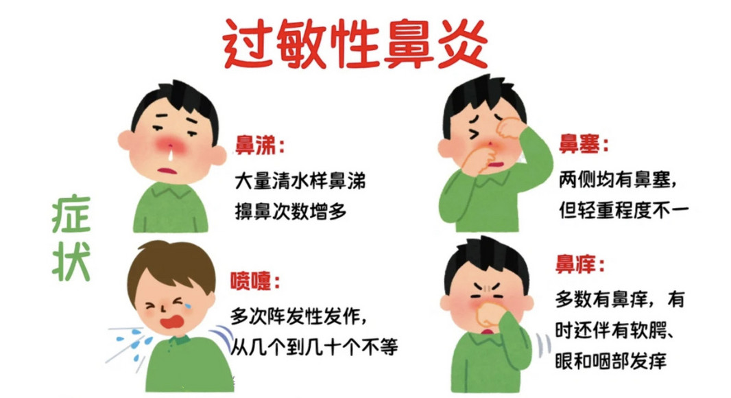 其他伴随症状:可伴有眼部症状,包括眼痒、流泪、眼睛红肿和灼热感等;也可伴有喉痒、胸闷、咳嗽、哮喘发作等下呼吸道症状。
