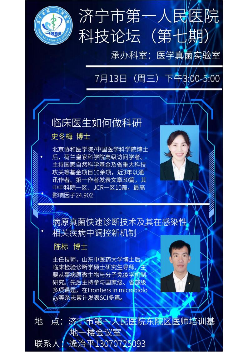 济宁市第一人民医院 第七期学术沙龙马上开始啦!