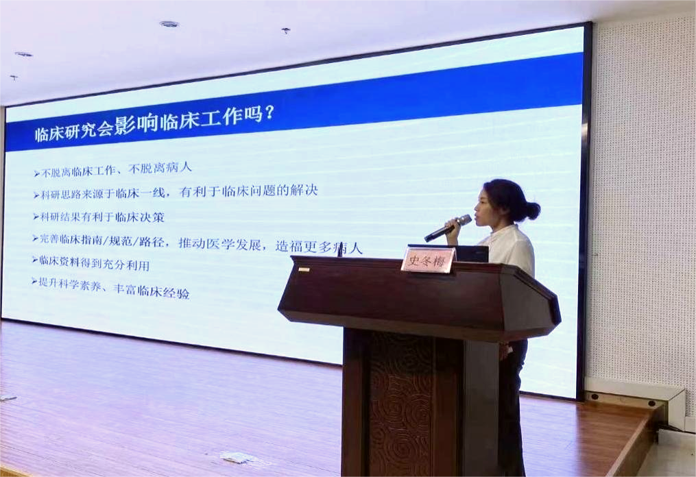 史冬梅博士以《临床医生如何做科研》为题,以临床医生为什么写文章和开展科研、临床研究是否会影响临床工作等临床医生科研面临的现实问题为铺垫。鼓励广大青年医生不脱离临床、不脱离病人,从临床问题出发,勤于思考、敢于创新,为常见疾病的新机制带来治疗方案。重点提出在科研方面需发挥出交叉学科的优势,与基础医学学科广泛合作,打通各学科间深度融合的通道。