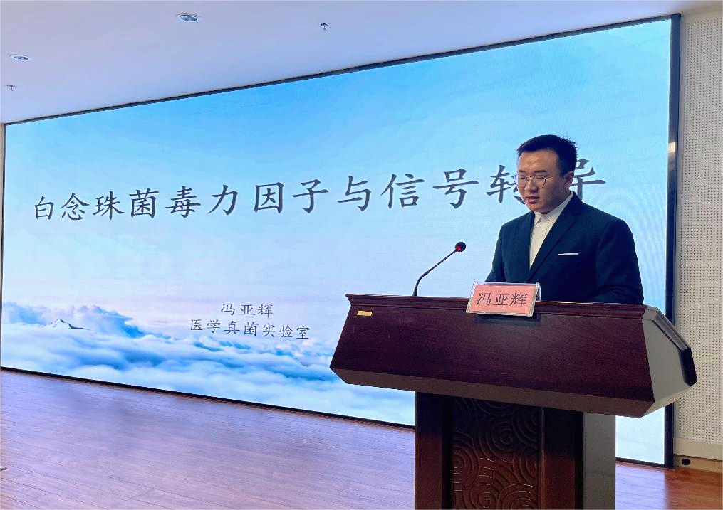 冯亚辉以《白念珠菌毒力因子与信号转导》为题,介绍了白色念珠菌的致病机制和药物作用靶点以及白念珠菌特有的CHK1基因。进一步介绍了溶细胞毒素Candidalysin与CHK1基因存在时空相关性的创新性假说,从而为具有念珠菌感染高危因素的患者和早期念珠菌感染患者提供预防及早期干预手段。