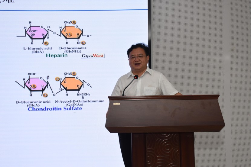 随后,李连博士为大家带来《基于硫酸软骨素的骨性关节炎治疗药物的研究》的报告。骨关节炎被称为“不死的癌症”,是世界范围内普遍存在的退行性关节疾病,严重影响人民生活质量。李博士研究发现潜在海洋药物∆UA-diSE可调节补体系统从而能够起到治疗骨关节炎的作用。在构效关系研究方面,证实了∆UA-diSE是硫酸软骨素E的最优功能单元,建立其分离、纯化、表征技术体系;在作用机制研究方面,确证∆UA-diSE的靶标补体蛋白C5,并确证了其通过调节补体系统发挥OA治疗作用的机制。在制剂应用方面,研发了热敏性可注射的水凝胶制剂,克服了∆UA-diSE分子量小、不稳定及代谢快等问题,为该药走向临床应用奠定了坚实的基础,为骨关节炎的治疗和药物开发提供了一种新的思路,也为其他相关疾病提供了一种有前景的C5靶向治疗方法。