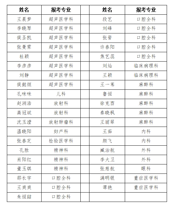 济宁市第一人民医院2024年住院医师规范化培训招收结果公示