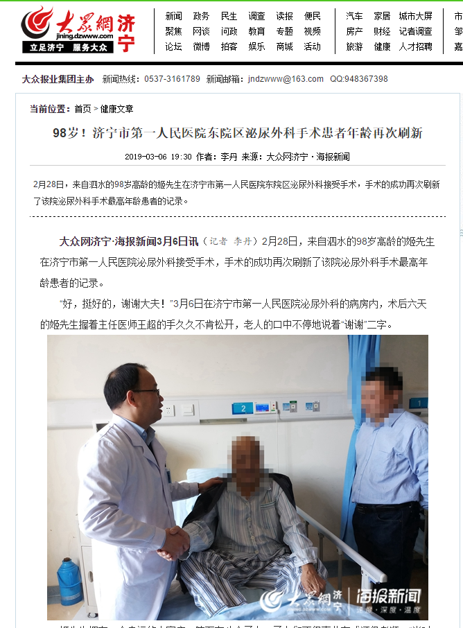大众网济宁--98岁!济宁市第一人民医院东院区泌尿外科手术患者年龄再次刷新