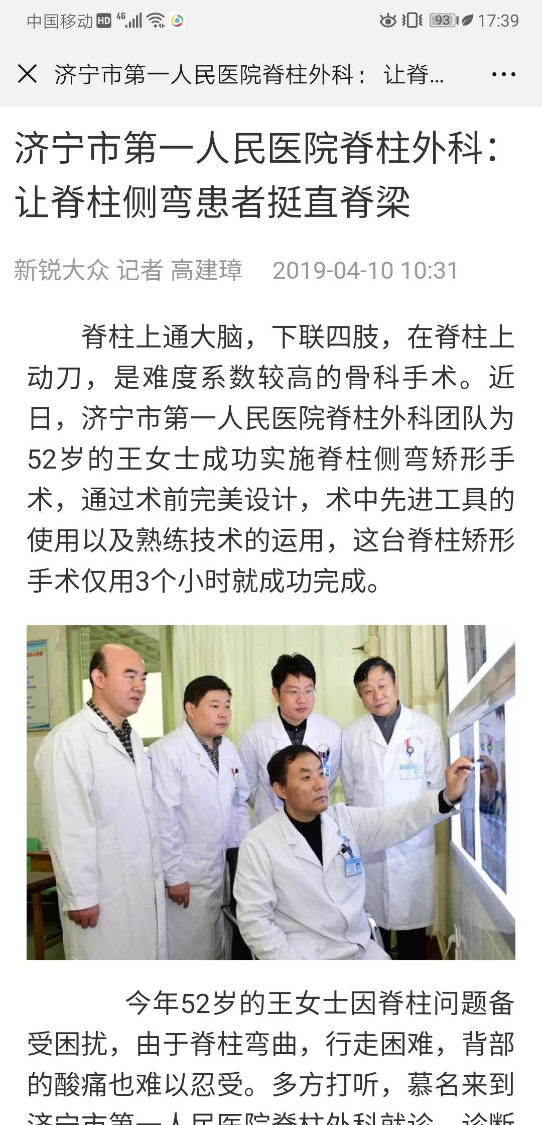 新锐大众--济宁市第一人民医院脊柱外科: 让脊柱侧弯患者挺直脊梁