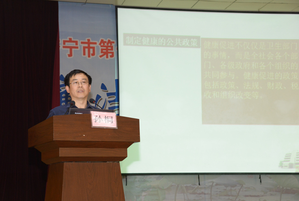 孙桐所长首先听取了我院“健康促进医院”创建工作情况汇报,并现场查看了有关资料,他对我院健康教育、健康促进工作予以充分肯定,然后孙桐教授为我院中层干部及各科室健康促进领导小组成员进行了专题培训,他结合理论、典型案例和多年的工作实践,就健康教育与健康促进的比较、开展医院健康促进的目的、内容及意义、医院健康教育与健康促进的实施、控烟等内容分别进行了讲解。他强调指出,健康促进医院工作是医院发展的趋势,广大医务人员要转变观念,真正理解健康促进的含义,利用医院自身优势,传播健康理念,倡导健康文明生活的方式,更好地为患者提供优质的服务。