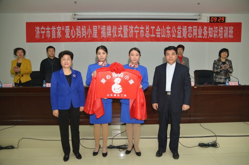 会上,济宁市总工会党组书记、常务副主席岳秀银及我院党委书记王志安共同为济宁市首家“爱心妈妈小屋”揭牌。