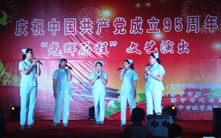 6月24日晚,牌坊街社区联合我院党委举办的庆祝建党95周年“光辉历程”文艺汇演在济宁汽车站广场举行。医院党委组织专人参与筹备,利用业余时间排练节目,其中社区卫生服务部冯剑演唱《在那桃花盛开的地方》和母婴健康管理部送上的《市一院母婴之歌》受到了现场群众的好评。通过此次活动,进一步加强了社区党建工作,展现了医院新风貌、新品牌。