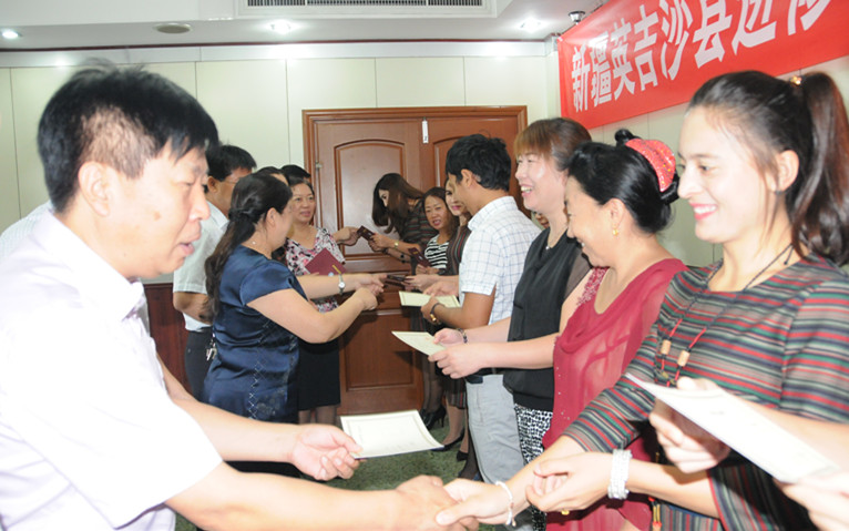 结业仪式上,副院长肖要来表达了对学员顺利结业的祝贺。并希望各位学员回到家乡把济宁市第一人民医院的这份深厚的感情带到英吉沙去,回到各自的工作岗位后努力工作,积极为维护民族团结、繁荣卫生事业多做贡献。医务部主任齐先龙、理疗科主任陈爱华分别向学员的顺利结业表示祝贺,并希望他们将学到的知识学以致用,为新疆人民的健康服务。进修班学员唐新兰代表全体学员发言,表达了对济宁市卫计委和济宁市第一人民医院的感谢和难舍之情。