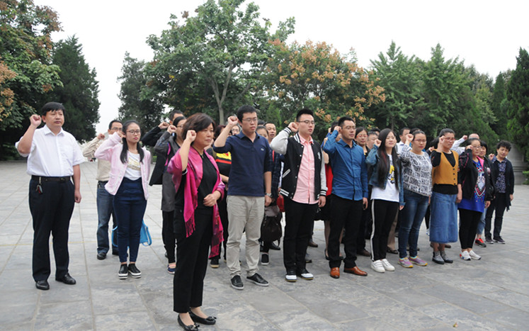 在焦裕禄烈士陵前,面对鲜红的党旗,预备党员举行了庄严的入党宣誓,老党员一起重温入党誓词,激励自己牢记党的宗旨。之后同志们怀着崇敬的心情参观了焦裕禄纪念馆,共同聆听学习了焦裕禄同志带领兰考人民战天斗地的典型事迹,重温了焦裕禄同志伟大光荣的一生,深刻领会了“焦裕禄精神”的内涵。