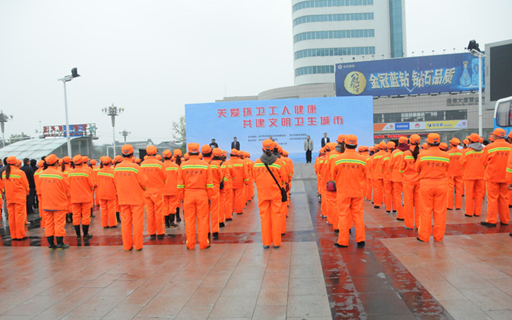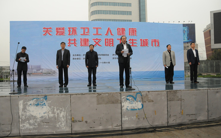 10月24日,济宁市卫计委、济宁市城市管理局、济宁市第一人民医院联合举办的“关爱环卫工人健康、共促五城同创”大型公益活动在文化广场举行。济宁市政府副市长田卫东、市政府副秘书长张玕、市卫计委主任焦华、市城市管理局局长郭庆林、市一院党委书记、院长孙树印等领导出席,市一院知名专家代表、环卫职工100余人参加。
