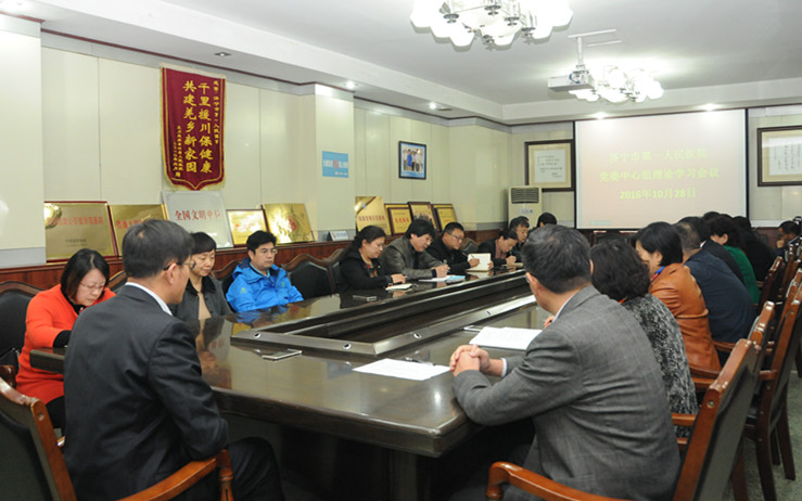 10月28日下午,我院在办公楼四楼会议室召开党委中心组理论学习会议。院党委书记、院长孙树印、副院长杨星林、纪委书记郭金菊、工会主席许红霞以及院党支部书记、行政职能科室负责人40余人参加了会议。