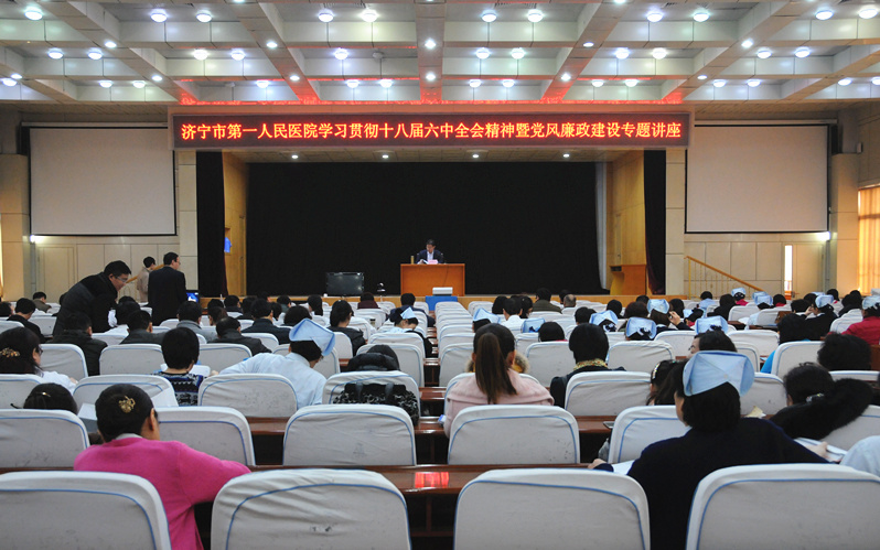 为深入学习宣传贯彻党的十八届六中全会精神,进一步加强我院党风廉政建设,12月22日下午,我院召开了学习贯彻十八届六中全会精神暨党风廉政建设专题讲座,院领导、临床、医技、职能科室正副主任、正副护士长、各党支部书记、委员和党员代表300余人参加了会议。