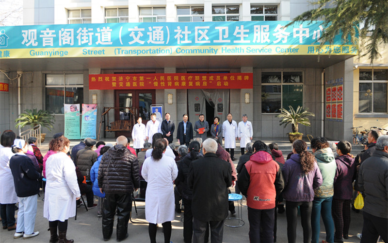 3月7号,济宁市第一人民医院同质化医疗联盟成员单位揭牌暨慢性肾病康复病房启动仪式在交通社区卫生服务中心举行。