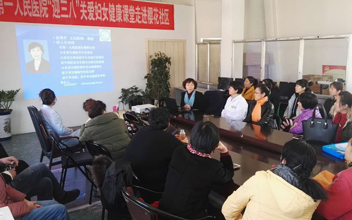 三八国际劳动妇女节到来之际,济宁市第一人民医院社区卫生服务部组织专家走进樱花社区,进行了一场女性健康大课堂,生殖医学科孙秀芹主任给大家送去了围绝经期妇女健康大餐