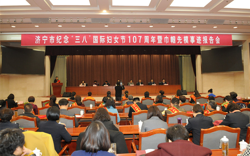 济宁市纪念“三八”国际妇女节107周年暨巾帼先模事迹报告会举行