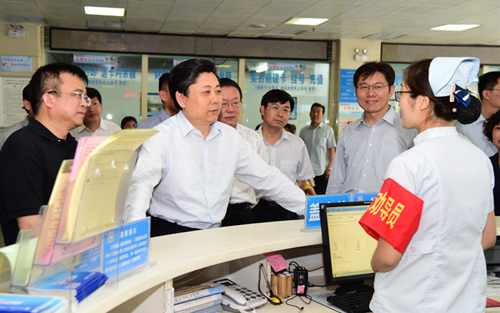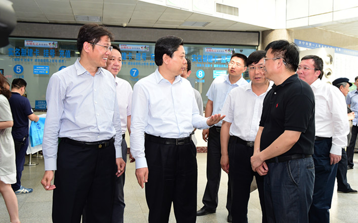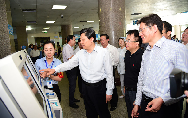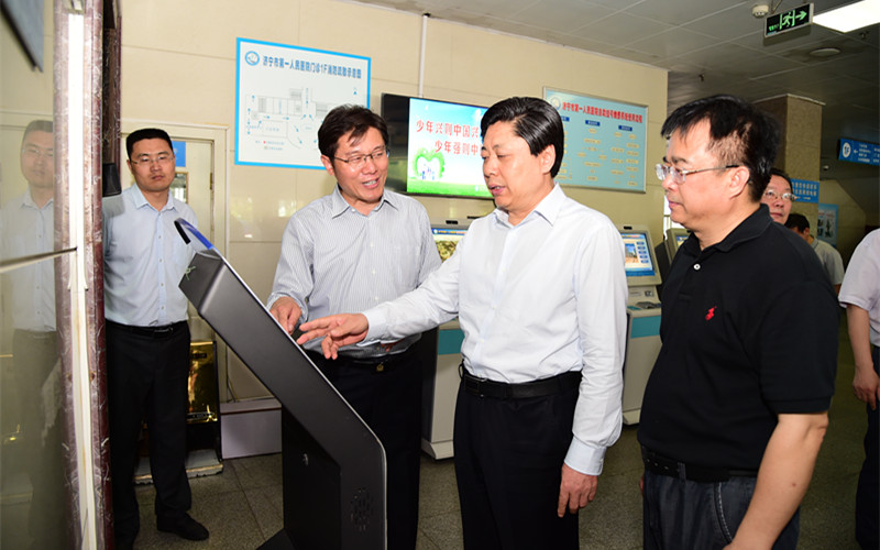 王艺华在门诊楼大厅详细询问了医院的门诊量、便民门诊、无障碍设施建设、公益广告设置等情况,医院党委书记、院长孙树印一一做了详细介绍。在门诊服务台前,市委书记王艺华就创城工作的应知应会知识向服务台工作人员进行了提问,服务人员认真熟练地做了回答,王书记非常满意。随后王书记观摩了我院自主开发设计的“文明服务缺陷管理”意见征询服务系统操作演示,对医院积极投入创城工作的做法和成效给予了肯定。王书记指出,创建全国文明城市是一项系统工程、民生工程,医院作为窗口单位是人流集中的场所,同时也是创城工作的重点和难点。王书记希望医院充分发挥全国文明单位的示范引领作用,切实增强责任意识和担当精神,坚持以患者为中心,不断提升软硬件建设水平,为广大人民群众营造更加舒适、便捷的医疗环境,全力全速推动创城各项工作稳步推进。