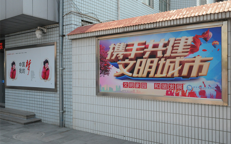 走进济宁市第一人民医院大门,首先映入眼帘的就是门诊楼上巨大的显示屏,播放着社会主义核心价值观教育、思想道德建设等内容,电子屏循环播放“讲文明树新风”和“我的中国梦”的公益广告,多种形式宣传展示精神文明和创城内容让人不感乏味。