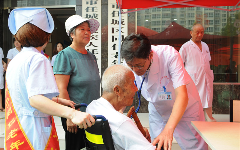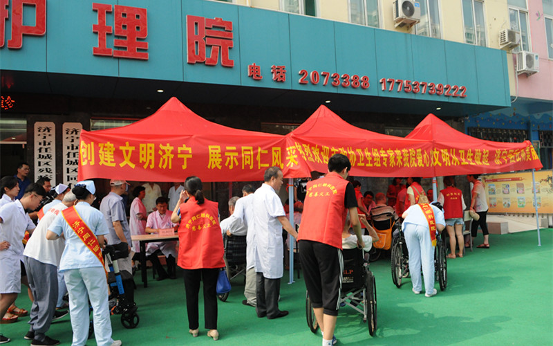 一大早,我院党委书记、理事长孙树印、院纪委书记郭金菊带领医院内科、外科、儿科、中医科专家冒着酷暑高温来到了济宁市任城区同仁老年护理院,开展爱心义诊活动。活动现场,前来问诊、咨询的市民络绎不绝,持以往病历的,拿化验结果单、X光片的,扶着老人来的围满了就诊台。参与义诊活动的专家们在认真细致地为居民量血压、查体问诊的同时,还耐心地讲解日常疾病预防、养生保健知识等,指导市民“未病先防”、“既病防变”、“预后防复”。