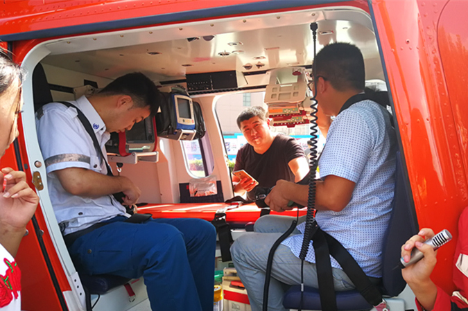 8月15日上午9点,我院空中救援直升机舱内适航仪器设备培训在东院区停机坪举行。