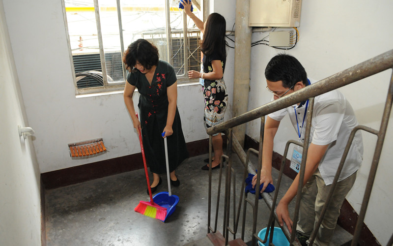 创建文明城市工作到了攻坚阶段,为响应市委市政府创城工作调度会议精神有关要求,积极营造社区居民良好生活环境,深化创建全国文明城市工作,8月25日上午,我院纪委书记郭金菊带领医院50余名党员志愿者与牌坊街居委会志愿者一同对医院宿舍进行了环境卫生清理。