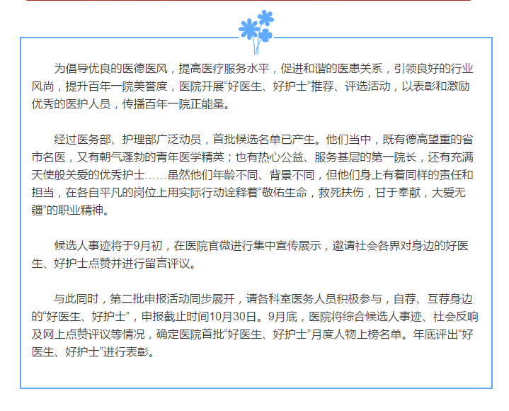 济宁市第一人民医院“好医生、好护士”推荐、评选活动开始啦!