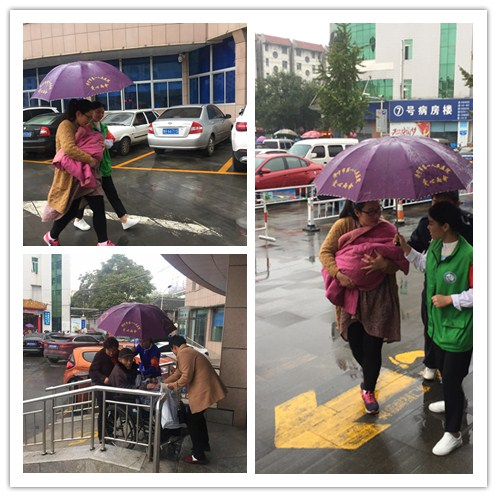 10月10日,小雨淋漓,带着秋的寒意,到医院就诊、探望的每个人都行色匆匆,就在这蒙蒙细雨中,济宁市第一人民医院一把把流动的红雨伞,一幕幕温情的镜头,却让来院就诊的患者心生感动,倍觉温暖。