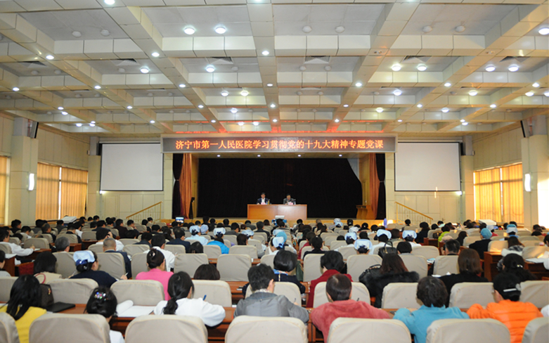 为进一步深入学习宣传贯彻党的十九大精神,11月9日下午,医院党委书记、理事长孙树印结合自身学习体会及医院工作实际,为全院党员领导干部上了一次学习宣传贯彻党的十九大精神专题党课。医院党委委员、副院长杨星林主持会议,院领导、临床、医技、职能科室正副主任、正副护士长、各党支部书记、委员和党员代表300余人参加了会议。