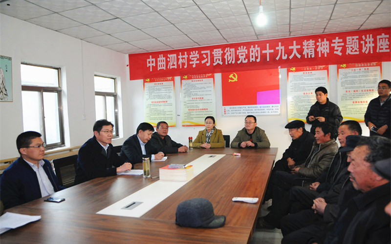 为进一步深入学习宣传贯彻党的十九大会议精神,11月24日,医院党委书记、理事长孙树印同志到泗水县泗河街道中曲泗村,结合自身学习体会和中曲泗村实际,为全体党员上了一堂深入学习贯彻党的十九大精神的专题党课。