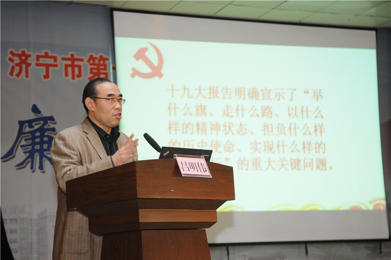 12月7日下午,我院组织召开党的十九大精神宣讲会。会议邀请济宁市委党校吕明伟教授作宣讲报告。医院领导班子成员,各党支部书记、委员、各临床、医技、职能科室正副科主任、正副护士长等共计300余人参会,医院纪委书记郭金菊主持宣讲会。