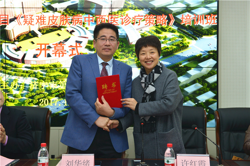 会上,济宁市第一人民医院党委委员、工会主席许红霞为刘华绪教授颁发了客座教授聘书。随后,宁市中西医结合皮肤病学分会主任委员邱莹宣布鲁西南皮肤性病学专科联盟成立,宣读了首批鲁西南皮肤性病学专科联盟单位名单,并举行了“鲁西南皮肤性病学专科联盟”启动仪式。