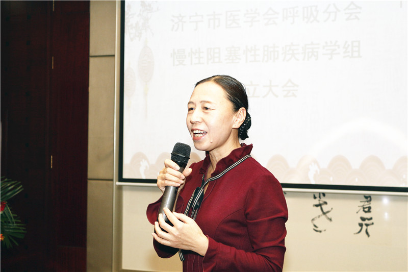 会议推选张立环主任医师担任济宁市医学会呼吸分会慢阻肺学组首任组长,来自各县市的6位呼吸科主任担任副组长。随后,济宁市医学会呼吸分会主任委员、我院院长助理、呼吸内科主任刘瑞娟教授致欢迎词。